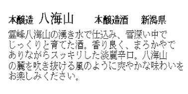 Hakkaisan Honjyozo is made from the pure water welled from Hakkai Mountain. Mild yet crisp flavor of Hakkaisan Honjyozo reflects the clear wind blowing off the sacred Hakkai Mountain.