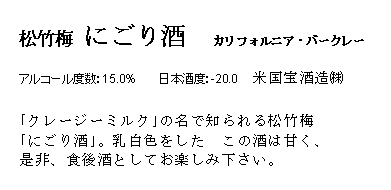 Historically a Samurai's Sake. Also call "Crazy Milk".