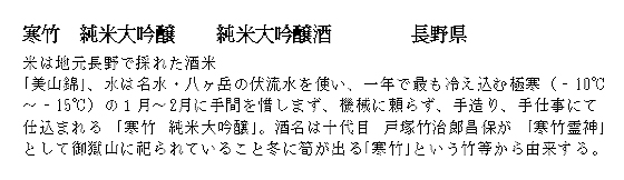 A product of nature all harvested locally, Kanchiku uses Nagano grown Miyamanishiki rice and Yatsugatake underground spring waters. It is intentionally brewed during the sub-freezing months around minus 15 degrees Celcius, to arrive at the Toji's ideal brew. The name depicts a rare species of bamboo which sprout in winter.