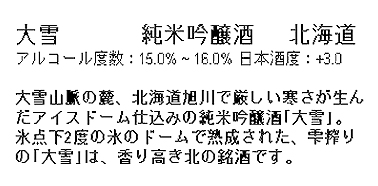 TAISETSU, named after Mt. Taisetsu or "The Gardens of the Divine", is slow-aged in unique Japanese style igloos called Yukihimuro ice dome. Serve chilled to enjoy a delightfully floral and clean aroma.