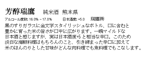 With one sip, the flavor of gentle rice UMAMI will hint mild, mellow sake. But in fact Hojun Zuiyo is quite dry (+5.0) with a nice acidity level. Well-known sake critics mentioned "This Sake fits North American dishes. It is an American Type of Sake".