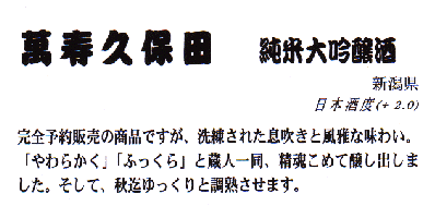 A truly sophisticated aroma and elegant flavor. Clear, light and dry, where the taste disappears quickly from the mouth. Aged for an extended period until the peak of maturity before bottling. The very rare and most sought after Dai Ginjyo in Japan. Consistently rated number one by Sake connoisseurs and fine dining restaurant owners.