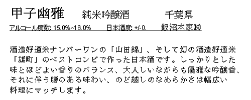Flavor Profile: The gentle but firm taste, coupled with a good balance of flavor and fine aroma, makes this Sake appetizing with a wide variety of cuisine.